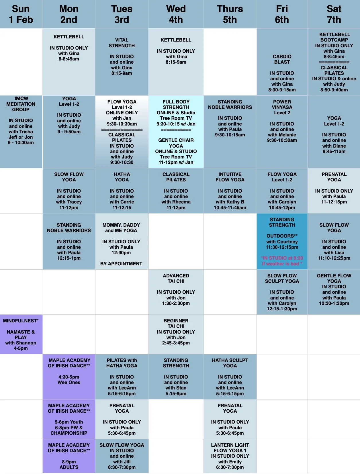 Feb 1 to Feb 7 Weekly Schedule Sun, Feb 1, 2026 10:30 AM 10:30 Sat, Feb 7, 2026 2:30 PM 14:30 Body Grace Fitness & Yoga (map) Google Calendar ICS View Event →